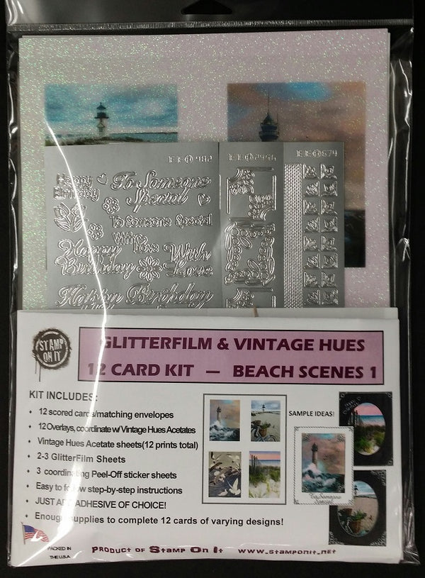GlitterFilm & Vintage Hues 12 Card Kit Beach Scenes 1