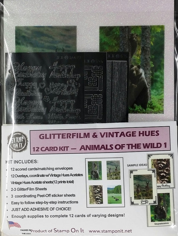 GlitterFilm & Vintage Hues 12 Card Kit Animals of the Wild 1
