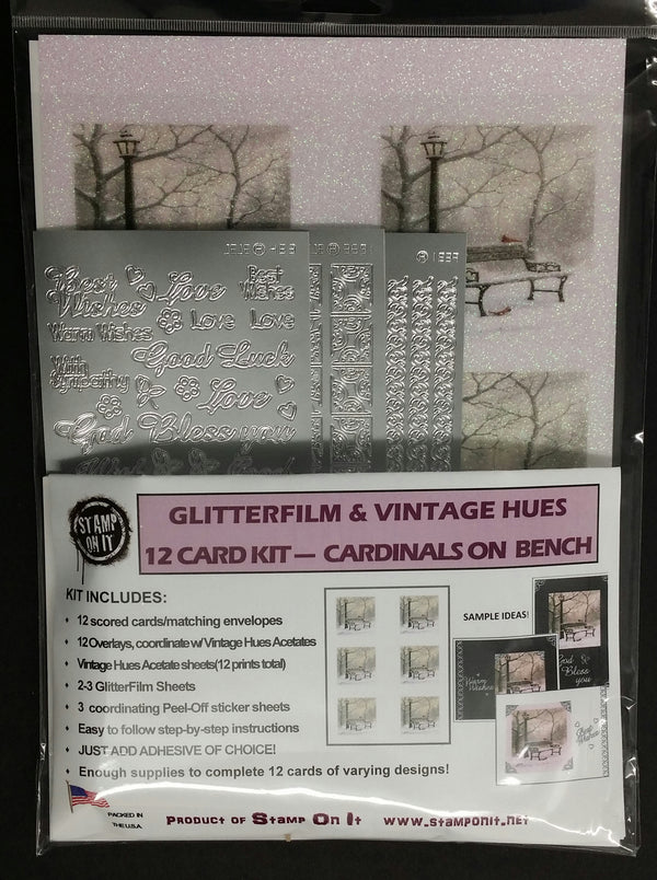 GlitterFilm & Vintage Hues 12 Card Kit Cardinals on Bench