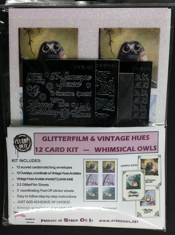 GlitterFilm & Vintage Hues 12 Card Kit Whimsical Owl Squares 1