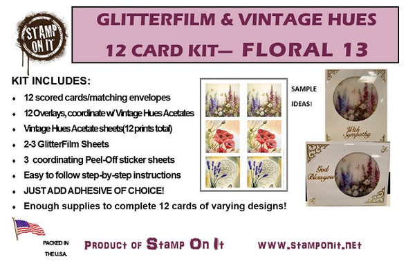 GlitterFilm & Vintage Hues 12 Card Kit Floral 13 Squares