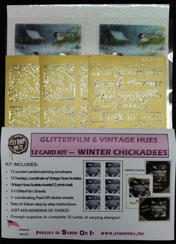 GlitterFilm & Vintage Hues 12 Card Kit Winter Chickadees