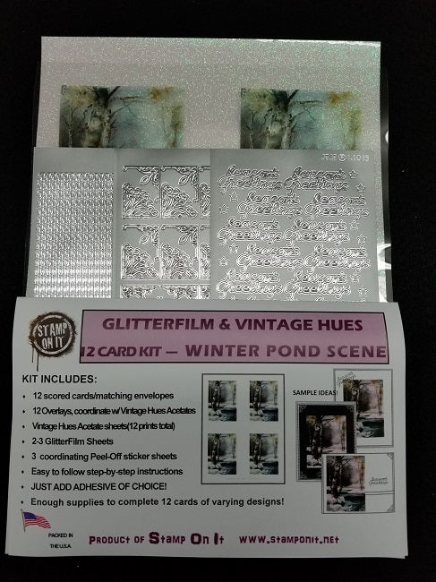 GlitterFilm & Vintage Hues 12 Card Kit Winter Pond Scene