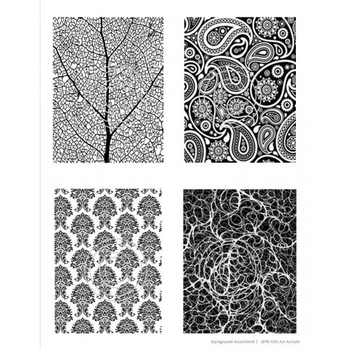 Background Prints can be used as is and layered over cardstock, papers, background papers, or over backgrounds created using our Adhesive Sheets and glitter, embossing powder, or colored sand. Or use the Crystal Lacquer as your adhesive putting a few dots of adhesive where there is dark print. Adhere our GlitterFilm to the back to produce a beautiful all over shimmer!