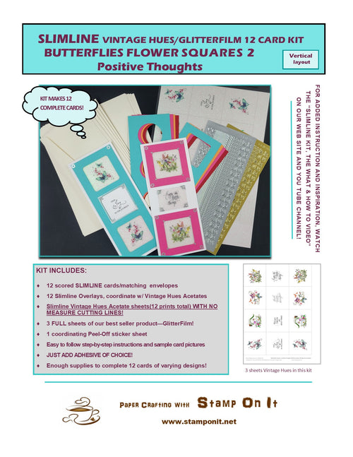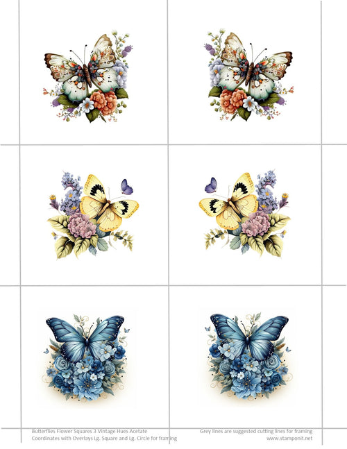 Butterflies Flower Squares 3 Slimline Vintage Hue Acetate