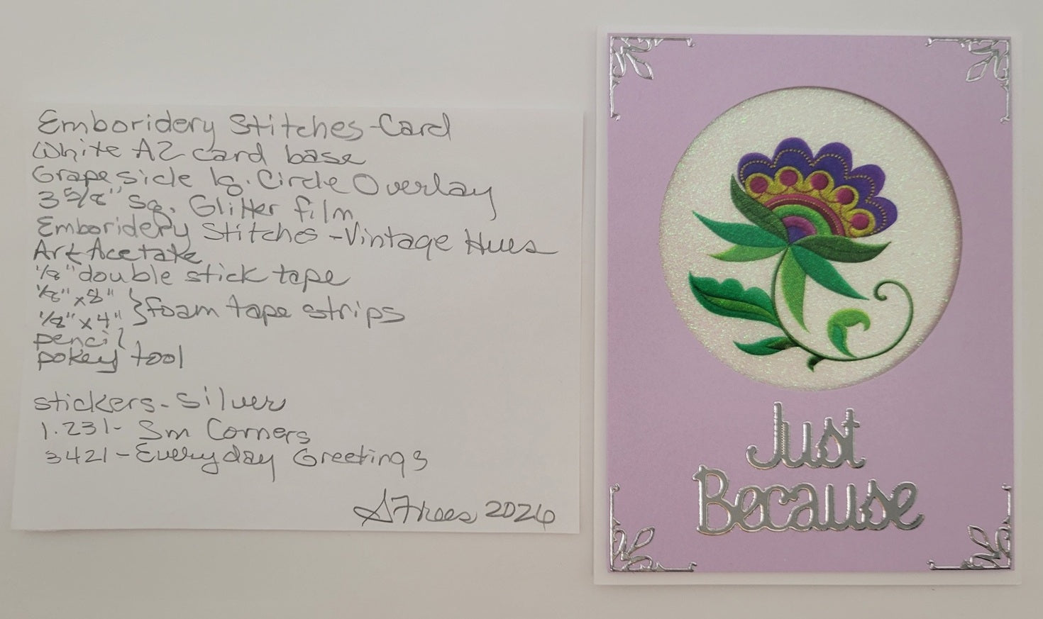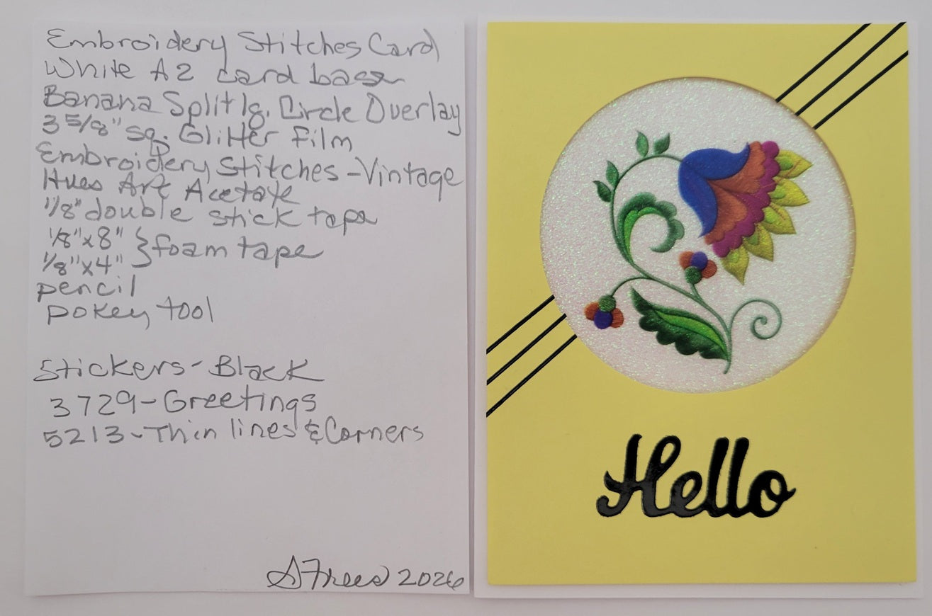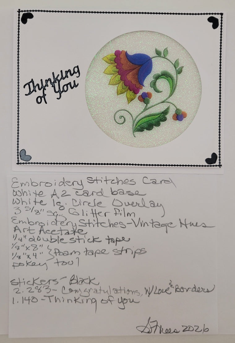 NOTE:  Embroidery Stitches coordinates with our circle /or square Overlays for framing if desired.