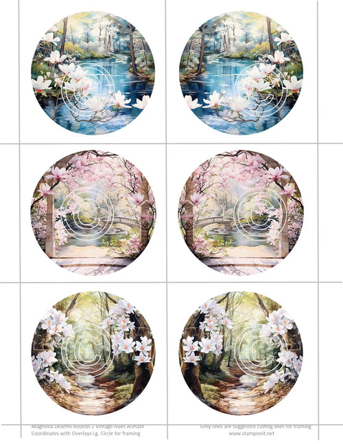 NOTE: Magnolia Dreams 1 Rounds coordinates with our lg. circle Overlays for framing if desired.