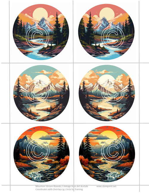 NOTE:  Mountain Streams Rounds 1 coordinates with our lg. circle Overlays for framing if desired.