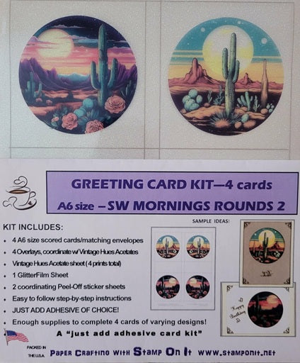 Our GlitterFilm & Vintage Hues 12 Card Kits contain all the products needed to complete 12 beautiful cards/or projects of varying design depending on the creator's imagination!   In some cases you will have extra product left over depending on items used on each card/or project.  each kit contains:12 cards/matching envelopes12 overlays that coordinate with the Vintage Hues designs used in the kit2-3 sheets of Vintage Hues (12 prints)3 sheets Peel-Off style stickers that will coordinate with the project2-3 sheets GlitterFilm(adhesive backed) enough to back Vintage Hue sheets encloseddetailed instructions from start to finish!  THIS IS A JUST ADD ADHESIVE KIT!!!  see samples below and check out our VIDEO section for the tutorial on our GlitterFilm & Vintage Hues 12 Card Kits!