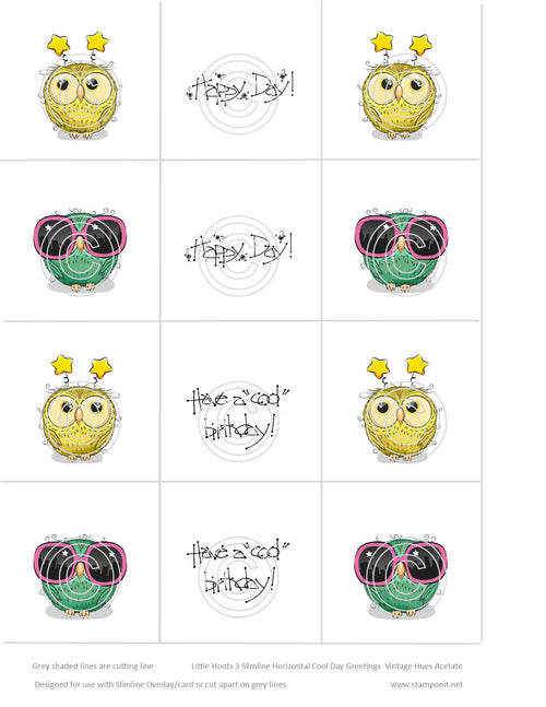 GlitterFilm & Vintage Hues 12 Slimline Card Kit Little Hoots 1 "Hi" Greeting