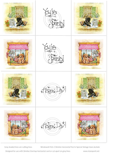 GlitterFilm & Vintage Hues 12 Slimline Card Kit Windowsill Pets 2 Best Wishes