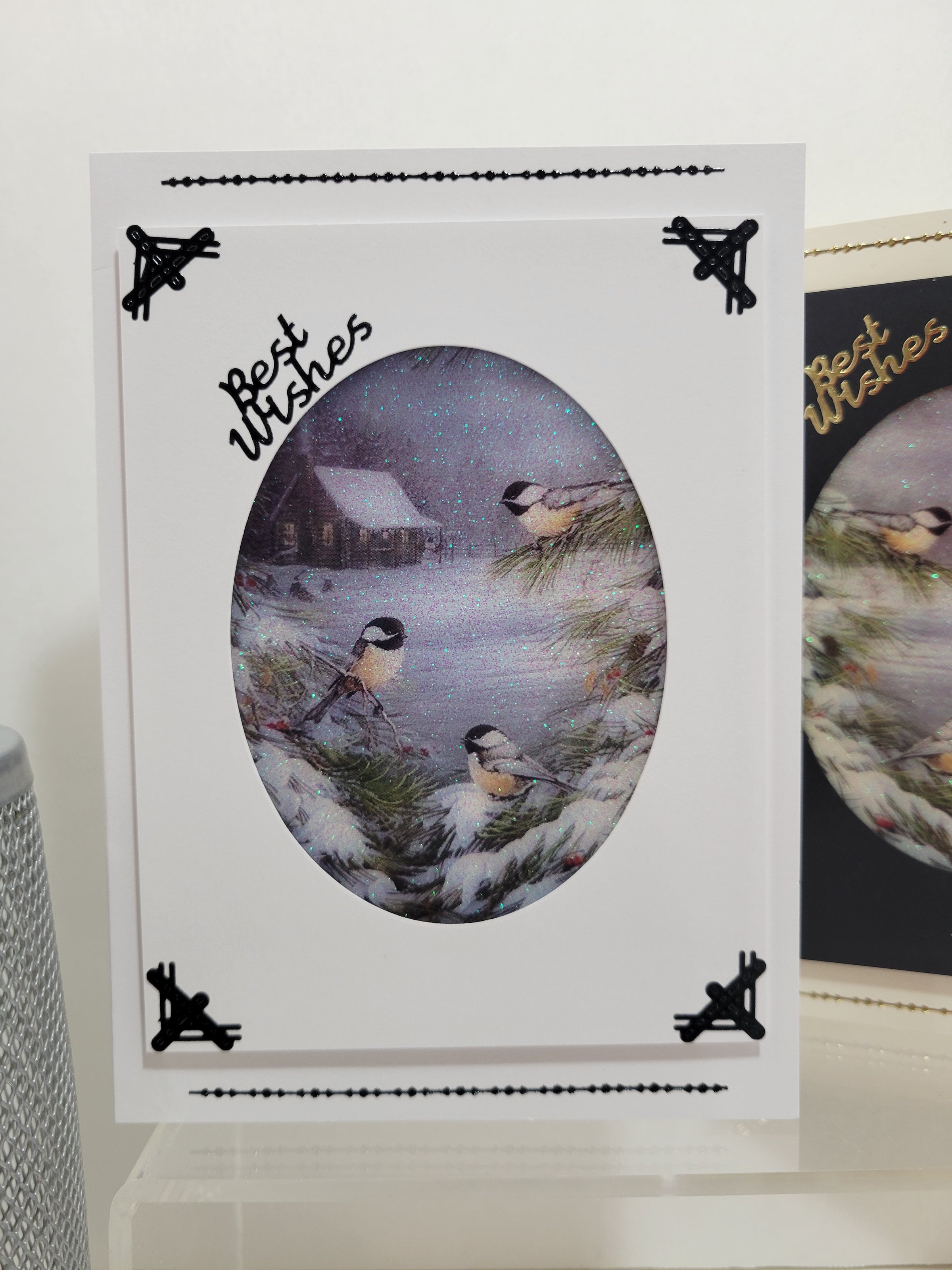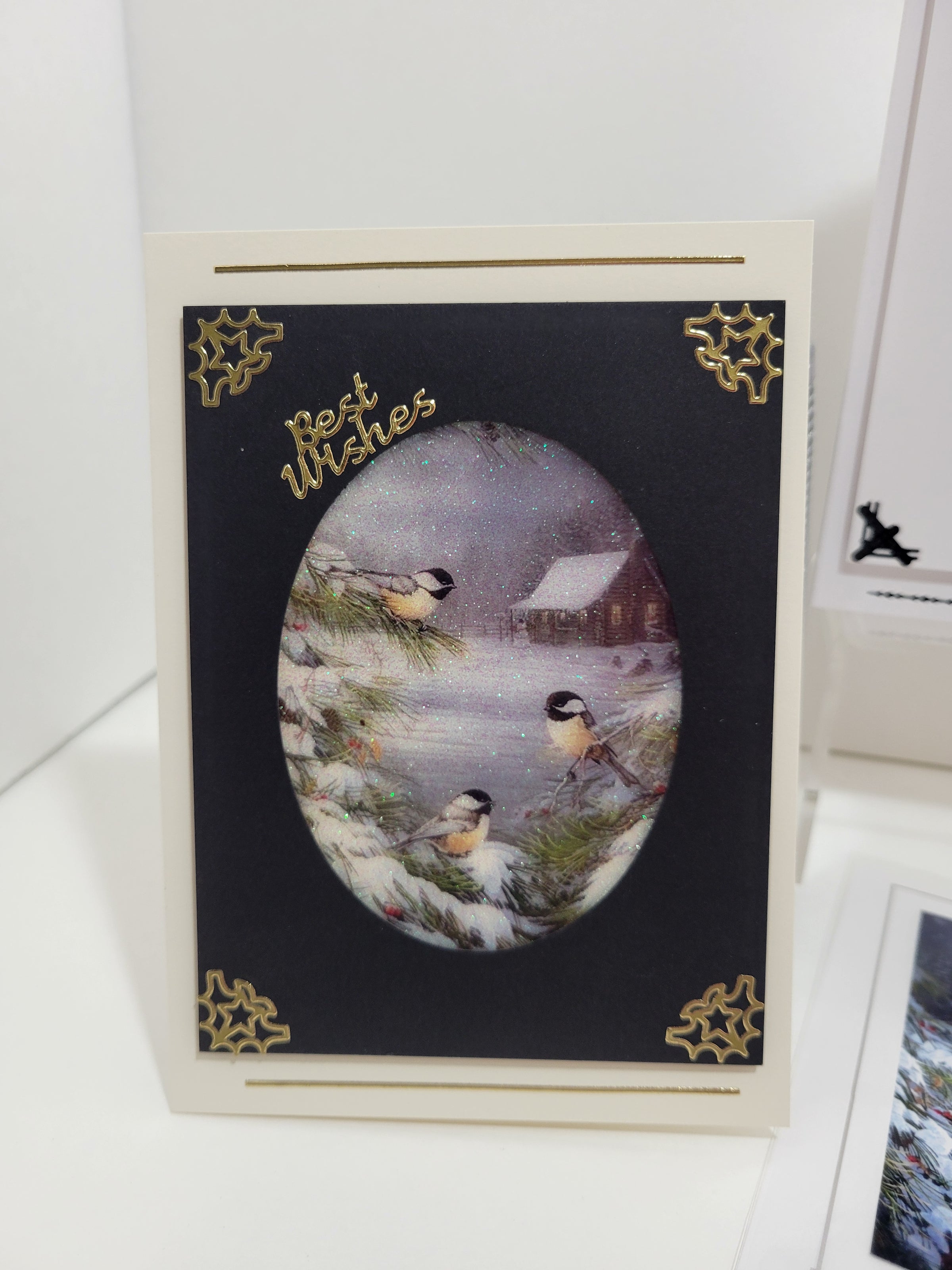 GlitterFilm and Vintage Hue 4 Card Kit Winter Chickadees