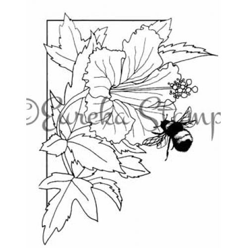 Thank You Hibiscus and Bee Framed Art Rubber Stamp ES 56201T