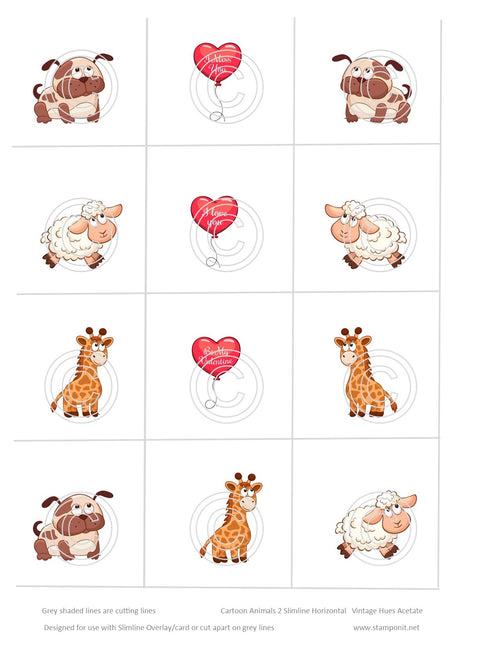 Cartoon Animals 2 Slimline Full Sheet Vintage Hues Acetate