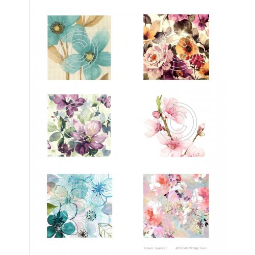 Vintage Hues: are full color print, 4-6 per sheet and stunningly beautiful used as is or can be enhanced/embellished with Crystal Clear Glitter to specific areas (front or back depending on look desired) OR the Vintage Hues are most stunning when used with our GlitterFilm (white) for an “all-over” shimmer(see instructions included with product for easy application)