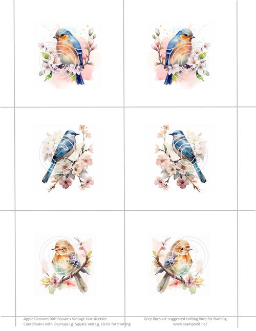GlitterFilm and Vintage Hue 12 Card Kit Apple Blossom Bird Squares