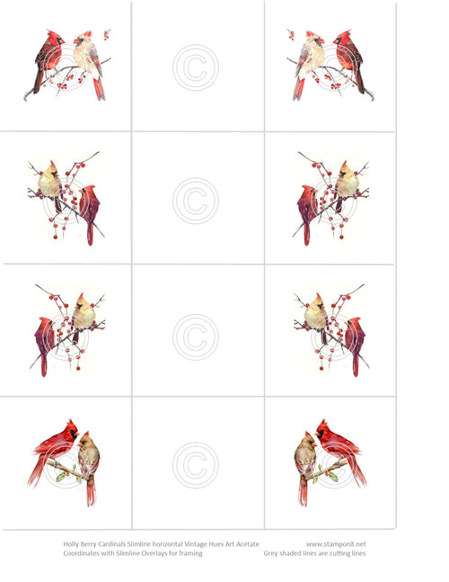 NOTE: Holly Berry Cardinals Vintage Hue coordinates with our rectangle and large oval Overlays for framing if desired.