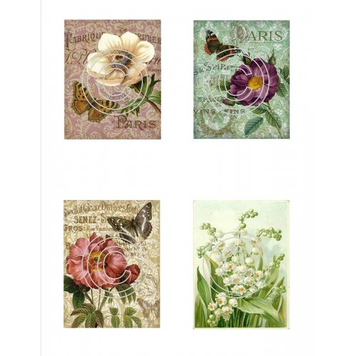 Vintage Hues:  are full color print, 4-6 per sheet and stunningly beautiful used as is or can be enhanced/embellished with Crystal Clear Glitter to specific areas (front or back depending on look desired) OR the Vintage Hues are most stunning when used with our GlitterFilm (white) for an “all-over” shimmer(see instructions included with product for easy application)